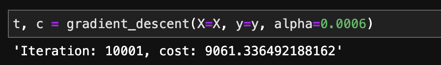 def gradient_descent(X, y, theta=None, alpha=0.0003):