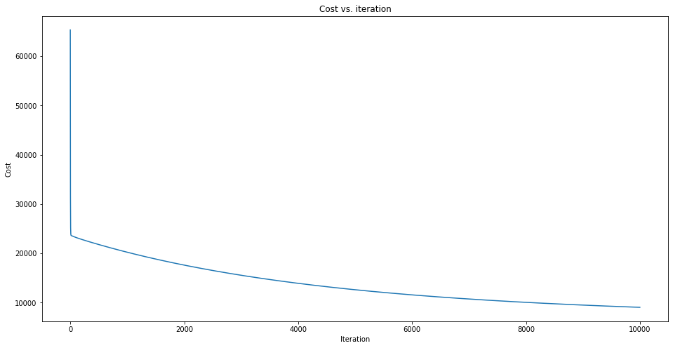 The cost vs iteration is plotted as follows: